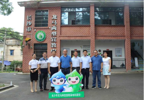 調(diào)研組實(shí)地調(diào)研長(zhǎng)沙市龍馬兩型社區(qū)并合影留念