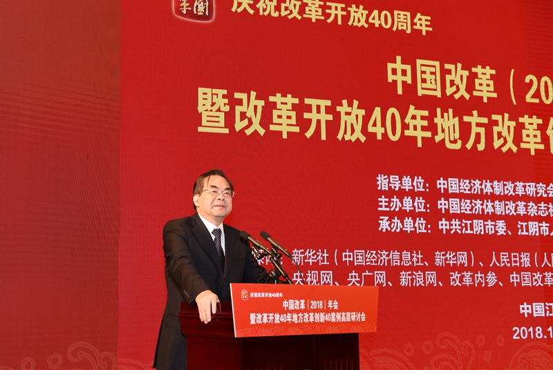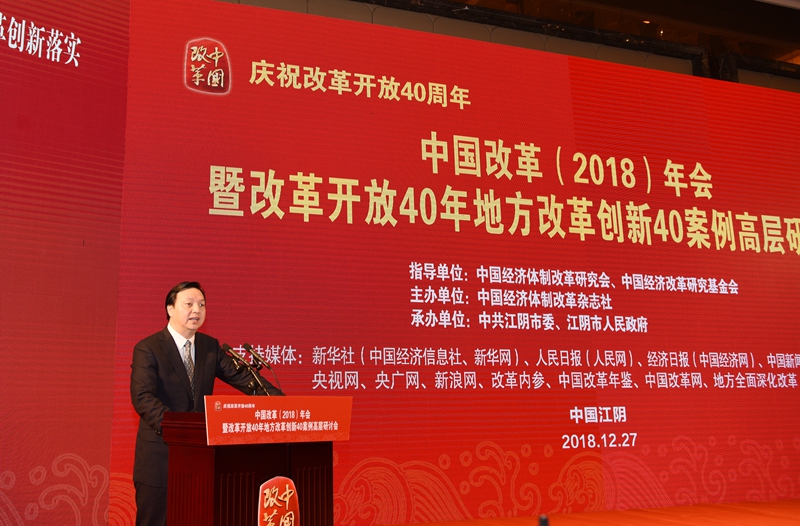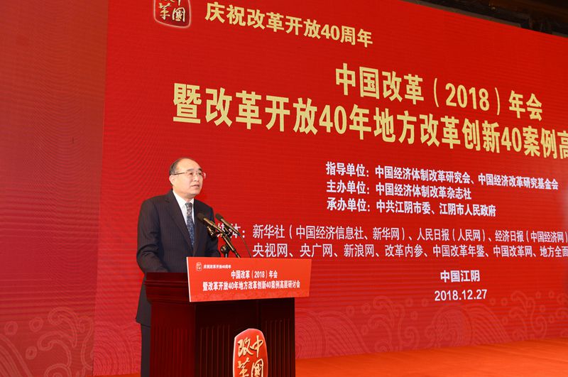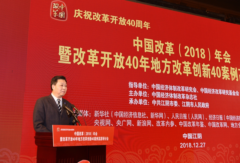 2018年12月27日,由中國經濟體制改革研究會、中國經濟改革研究基金會指導,中國經濟體制改革雜志社主辦,中共江陰市委、江陰市人民政府承辦的“慶祝改革開放40周年——中國改革(2018)年會暨改革開放40年地方改革創(chuàng)新40案例高層研討會”在江蘇省江陰市召開。