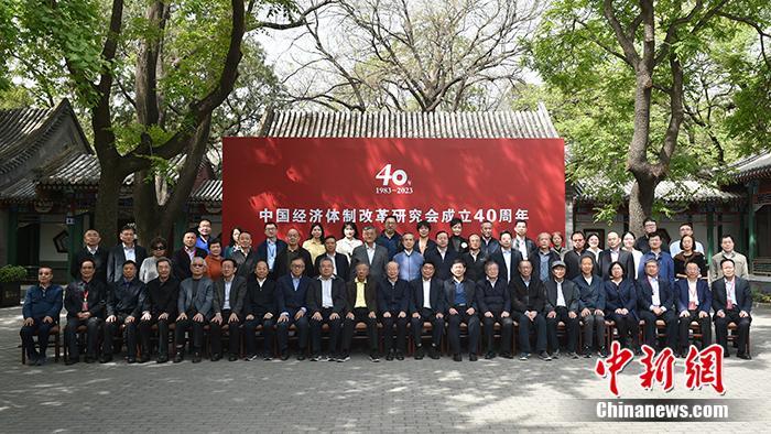 2023年4月19日,中國經(jīng)濟(jì)體制改革研究會在北京召開成立四十周年座談會,圖為與會嘉賓合影。中新網(wǎng)記者 李駿 攝