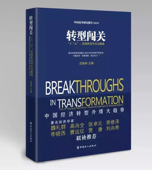 2016年2月25日,由中國(海南)改革發(fā)展研究院(以下簡稱中改院)、中國工人出版社主辦的《轉型闖關——“十三五”:結構性改革歷史挑戰(zhàn)》新書發(fā)布會在京舉行。中國行政體制改革研究會會長、中改院董事局主席魏禮群,原國家體改委副主任、中改院名譽院長高尚全,中國經(jīng)濟體制改革研究會顧問宋曉梧,全國人大常委員會委員、外事委員會副主任委員趙白鴿,中國社會科學院學部委員張卓元,商務部原部長助理黃海,國家發(fā)展和改革委員會經(jīng)濟研究所教授常修澤,北京師范大學校學術委員會副主任李曉西,中銀國際研究公司經(jīng)濟學家曹遠征等專家出席本次發(fā)布會。