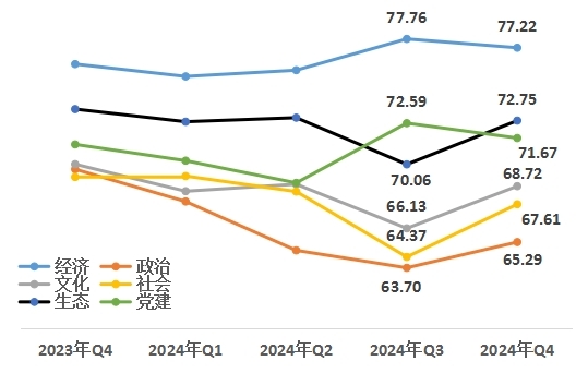 中國經(jīng)濟(jì)體制改革研究會“改革熱度指數(shù)”課題組認(rèn)為,面對當(dāng)前外部環(huán)境變化帶來的不利影響加深,我國經(jīng)濟(jì)運(yùn)行仍面臨不少困難和挑戰(zhàn),但我國經(jīng)濟(jì)基礎(chǔ)穩(wěn)、優(yōu)勢多、韌性強(qiáng)、潛能大,長期向好的支撐條件和基本趨勢沒有變。從改革熱度指數(shù)看,政治、文化、社會、生態(tài)領(lǐng)域熱度值提升,經(jīng)濟(jì)、黨建領(lǐng)域熱度值和宣傳度熱度值略有下降,四季度改革熱度指數(shù)依然保持高位運(yùn)行。2025年是貫徹黨的二十屆三中全會精神的重要一年,隨著各項(xiàng)改革逐步推進(jìn)、一攬子增量政策落地見效,必將為高質(zhì)量發(fā)展和推進(jìn)中國式現(xiàn)代化提供更有力的支撐。