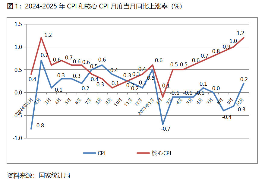 一、CPI漲幅持續(xù)回升。10月份,CPI同比上漲0.2%,9月份為下降0.3%,8月份為下降0.4%;核心CPI同比上漲1.2%,比9月份上漲1.0%回升了0.2個百分點,9月份漲幅比8月份上漲0.9%回升了0.1個百分點。CPI和核心CPI漲幅持續(xù)保持回升的態(tài)勢,表明經(jīng)濟運行活力有所增強,但由于漲幅均較為有限,加之較長時期處于較低水平,經(jīng)濟運行活力總體仍比較弱。